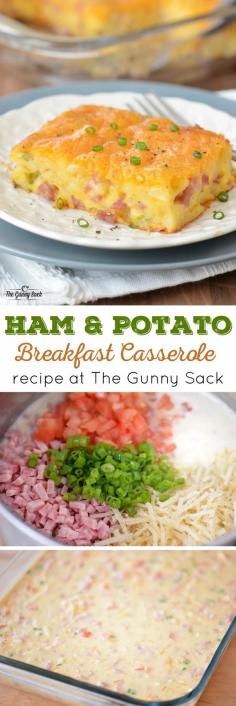 A Ham and Potato Breakfast Casserole is perfect for breakfast or brunch. This easy egg bake recipe includes ham, potatoes, cheese and Bisquick!