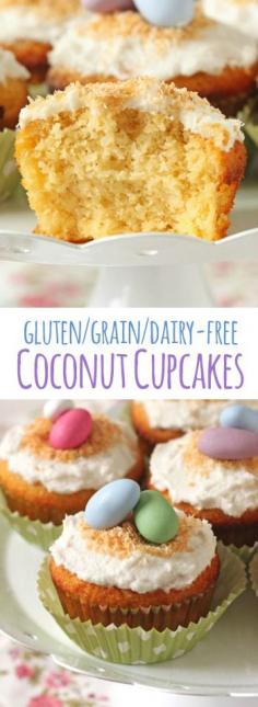 These coconut cupcakes are made with coconut and almond flour and have an amazing texture! And as a bonus, they’re gluten-free, grain-free and dairy-free.