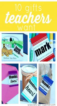 10 Gifts Teachers Want from Let's Get Together - awesome gift ideas and free printable gift tags. Love the pedicure idea! #gifting #teachergifts