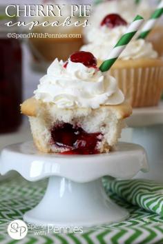 Cherry Pie Cupcakes are ridiculously delicious, soft and fluffy with a cherry pie surprise inside... these can be served warm out of the oven with a scoop of ice cream for a dessert your family is definitely not going to want to miss! #getyourbettyon