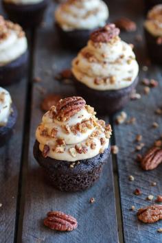 Chocolate Bourbon Pecan Pie Cupcakes with Butter Pecan Frosting | halfbakedharvest.com