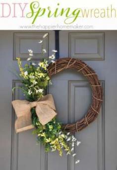 This DIY floral spring wreath is super easy to make-she shares a step by step photo tutorial