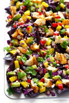 Rainbow Fish Taco Nachos -- easy to make, naturally gluten-free, and guaranteed to be the hit of the party! | gimmesomeoven.com