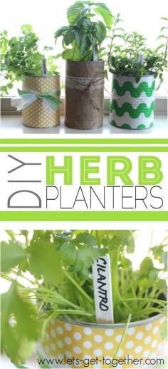 DIY Herb Planters from Let's Get Together -- love these! Such a cute and easy gift for Spring. Fun #earthday project because of the planting and reusing tin cans. #gifting
