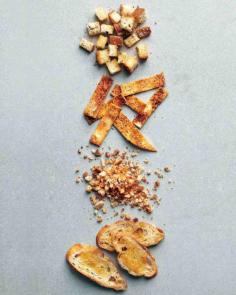 Simple Crostini INGREDIENTS 1/2 baguette 2 tablespoons extra-virgin olive oil Coarse salt and ground pepper DIRECTIONS Preheat oven to 350 degrees. Cut baguette into 1/2-inch-thick slices. On a rimmed baking sheet, toss with olive oil and season with salt and pepper. Bake in a single layer until crostini are toasted and crisp, about 20 minutes, flipping halfway through.