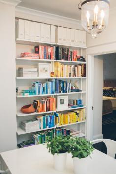 Sneak Peek: Kiera Kushian. "These 96” wall mounted bookcases from CB2 are one of my go-to items for a lot of the small spaces we design. They provide a ton of storage and really make great use of the shallow vertical space." #sneakpeek