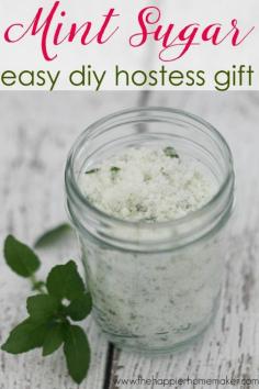 Mint Sugar DIY Hostess Gift idea, super easy recipe and an easy gift in a jar to take to a party or give for Christmas