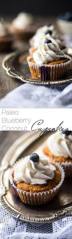 Blueberry Gluten Free Cupcakes with Coconut Cream – These cupcakes mixed with fresh blueberries and topped with coconut cream are a healthier, Paleo-friendly dessert that is perfect for Summer! | Foodfaithfitness.com | Taylor | Food Faith Fitness