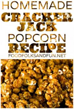 This Cracker Jack Recipe is the perfect homemade copycat! It's a great butter toffee popcorn recipe for gifting, snacking, or bring to baseball games! #CopyCatRecipe
