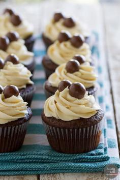 Chocolate Malt Cupcakes with Vanilla Malt Buttercream - rich chocolate cupcakes with a hint of malt are topped with a fluffy buttercream infused with even more malt flavor.