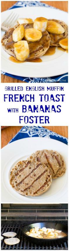 Grilled English Muffin French Toast with Bananas Foster on ASpicyPerspective...