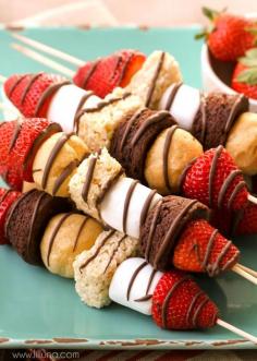 Dessert Kabobs - a simple and delicious way to serve several "mini" treats. Perfect for parties, barbecues and holidays! { lilluna.com }