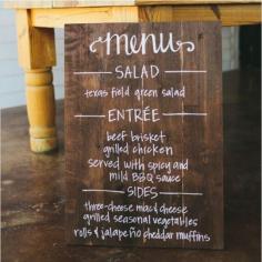 Wooden wedding menu sign. PC: Emma Teague #weddingchicks #woodensign #weddingmenu #wedding