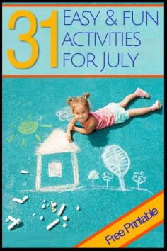 31 Easy Activities for July - 31 days of EASY, SIMPLE, Summer Fun for kids with a FREE printable calendar to download and print.