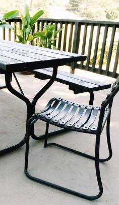 Choose some fun vintage modern outdoor chairs for additional seating and to add an updated look to the traditional picnic table. Inspired by True Value.