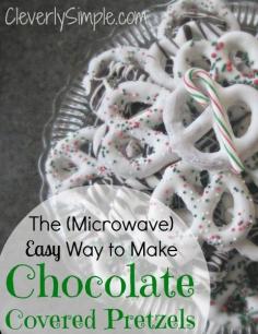 This is the easiest way to make those delicious chocolate covered pretzels! Great tips on how to melt the chocolate in the microwave!