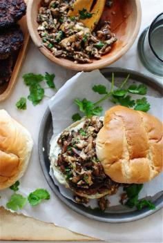 Asian Beef Burgers with a Shiitake Sauté by bevcooks