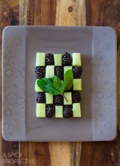 Easy Blackberry Honeydew Salad with Honey Lime Syrup by aspicyperspective: Just arrange the fruit in a pretty way on a plate. Sprinkle with fresh mint leaves. And drizzle honey lime syrup over the top. Done and yum. #Salad #Melon #Blackberry #Mint #Honey #LIme #Healthy #Light