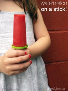 Watermelon on a Stick | Sometimes you just can't finish a big watermelon! So, preserve it by making "watermelon on a stick" -- watermelon popsicles. A refreshing treat during summertime heat, and these homemade popsicles are way better than the chemical-ridden conventional freezer treats. | GNOWFGLINS.com
