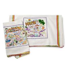 Celebrate your favorite vineyards and wine tasting spots with this bold dish towel showcasing famous wine regions and all their iconic details.