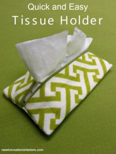 Quick and Easy Tissue Holder from NewtonCustomInter.... Learn how to make this tissue holder from leftover fabric with this detailed sewing tutorial.
