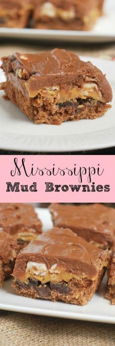 Mississippi Mud Brownies - chocolate, marshmallows, peanut butter, pecans, and more! These are so rich and delicious!