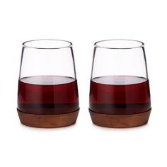 Combining the modern panache of stemless wine glass and the functionality of sturdy walnut wood coasters, David Rasmussen's handsome glasses add a rustic touch to your toasting.
