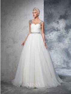 Ball Gown Sleeveless Straps Net Ruched Chapel Train Bridal Wedding Dresses