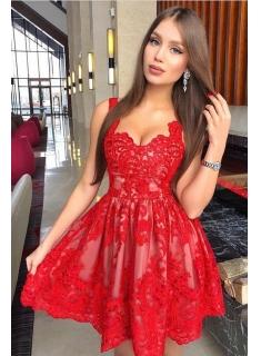 Rote Cocktailkleider Kurz | Spitze Abendkleider Mini Online