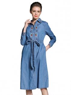 Buy Women's Denim Dress Floral Embroidery Casual Midi Dress & Denim Dress - at Jolly Chic