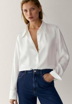 Massimo Dutti - IN SATINOPTIK - Button-down blouse - white