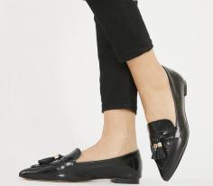 Office Fib Pointed Tassel Loafers Black Leather - Loafers
