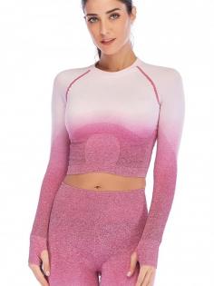 Captivating Light Purple Sports Top Thumbholes Rib Tie-Dyed Feminine Grace