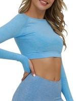 Quick Drying Light Blue Seamless Thumbhole Athletic Cropped Top