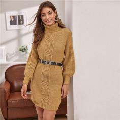 Turtleneck Without Belt Lantern Sleeve Short Sweater Dress