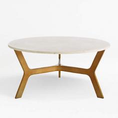 Round Glass Coffee Table with Brass Base