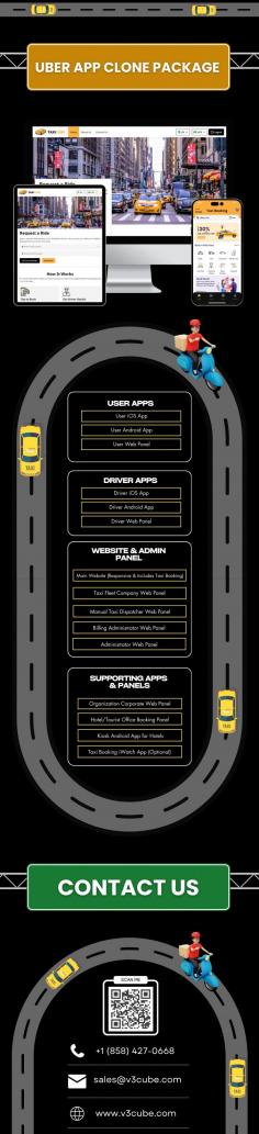 Get a complete Uber app clone package with User Apps, Driver Apps, Website & Admin Panel, Supporting Apps & Panels. Launch a scalable taxi booking solution fast and affordabl