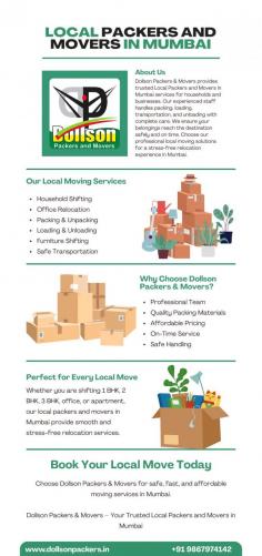 Looking for reliable Local Packers and Movers in Mumbai? Dollson Packers & Movers offers safe, affordable, and professional relocation services for homes and offices. Our trained team ensures careful packing, secure loading, and timely delivery across Mumbai. We focus on customer satisfaction and smooth shifting, making us a trusted choice for local moving services in Mumbai.