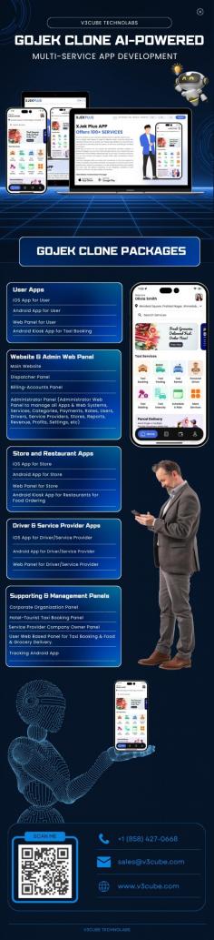 Launch an AI-powered Gojek clone multi-service app with ride-hailing, food delivery, parcel, and more. Scalable, customizable solution to grow your on-demand business fast.