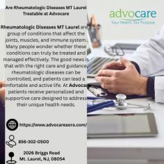 Rheumatologic Diseases MT Laurel are a group of conditions that affect the joints, muscles, and immune system. Many people wonder whether these conditions can truly be treated and managed effectively. The good news is that with the right care and guidance, rheumatologic diseases can be controlled, and patients can lead a comfortable and active life. At Advocare, patients receive personalized and supportive care designed to address their unique health needs.